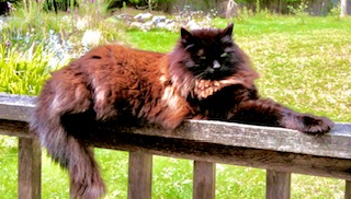 Rugal, even if over-enamoured with her own food -any food, actually- is capable of a sort of egalitarian love and unfettered loyalty. She is a trustworthy and eager trail guide, and almost always wanders deep into the bushes to do whatever it is they do in there. Having said that, I did have a cat, Smoky, that also used to follow me (although he hated crossing streams and usually remained meowing on the wrong side). He was a rag-doll cross and one of the reasons I liked him was because he would retrieve any balls I threw and drop them at my feet; and I could roughhouse with him like a dog without getting scratched or bitten. But that, I suspect, was the reason I enjoyed him so much: he was like a trans-dog.